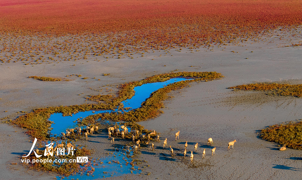 金秋時節,江蘇東臺條子泥濕地,萬畝鹽蒿五彩斑斕,野生動物休閑覓食,呈現出一幅幅自然和諧的生態…