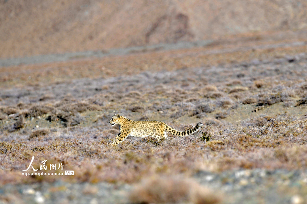 2024年10月24日,雪豹現身甘肅阿克塞哈薩克族自治縣阿勒騰鄉的高原。高宏善攝(人民圖片網…